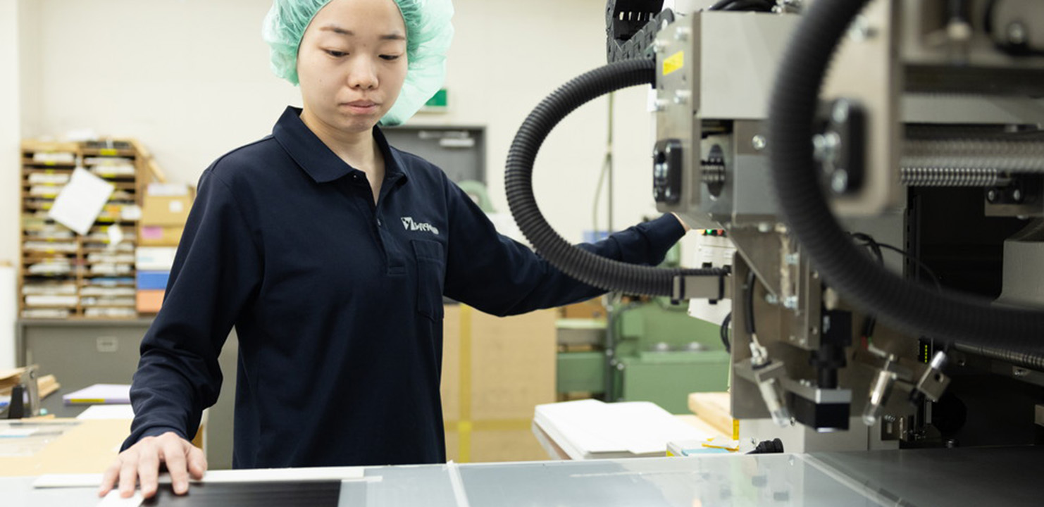 シールやラベルの形に合わせて素材を打ち抜く工程を担当。複雑な形状や厚みのある素材にも対応し、高精度の仕上がりを目指します。