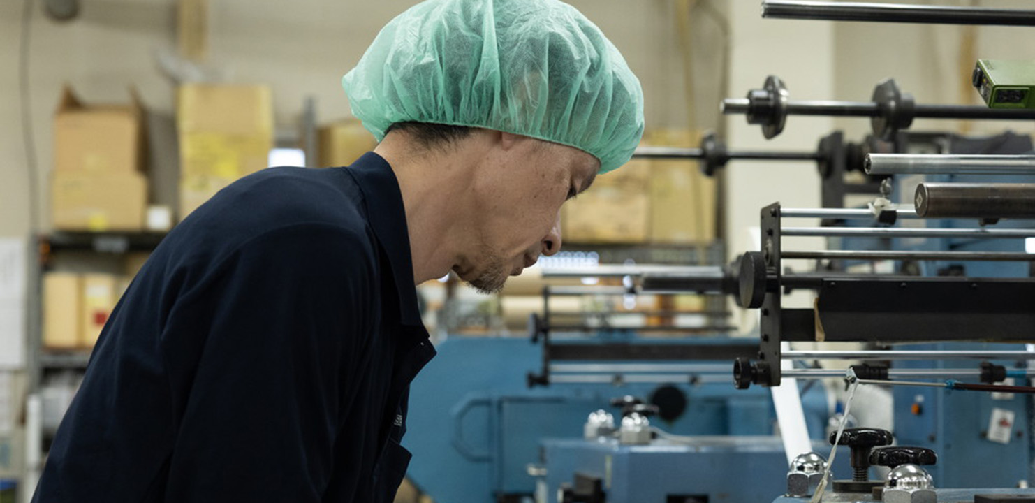 粘着テープをロール状に巻き取り、指定の幅にスライスする工程やスリット加工を担当。重さのある製品も多く、体力と正確さのどちらも活かせる仕事です。