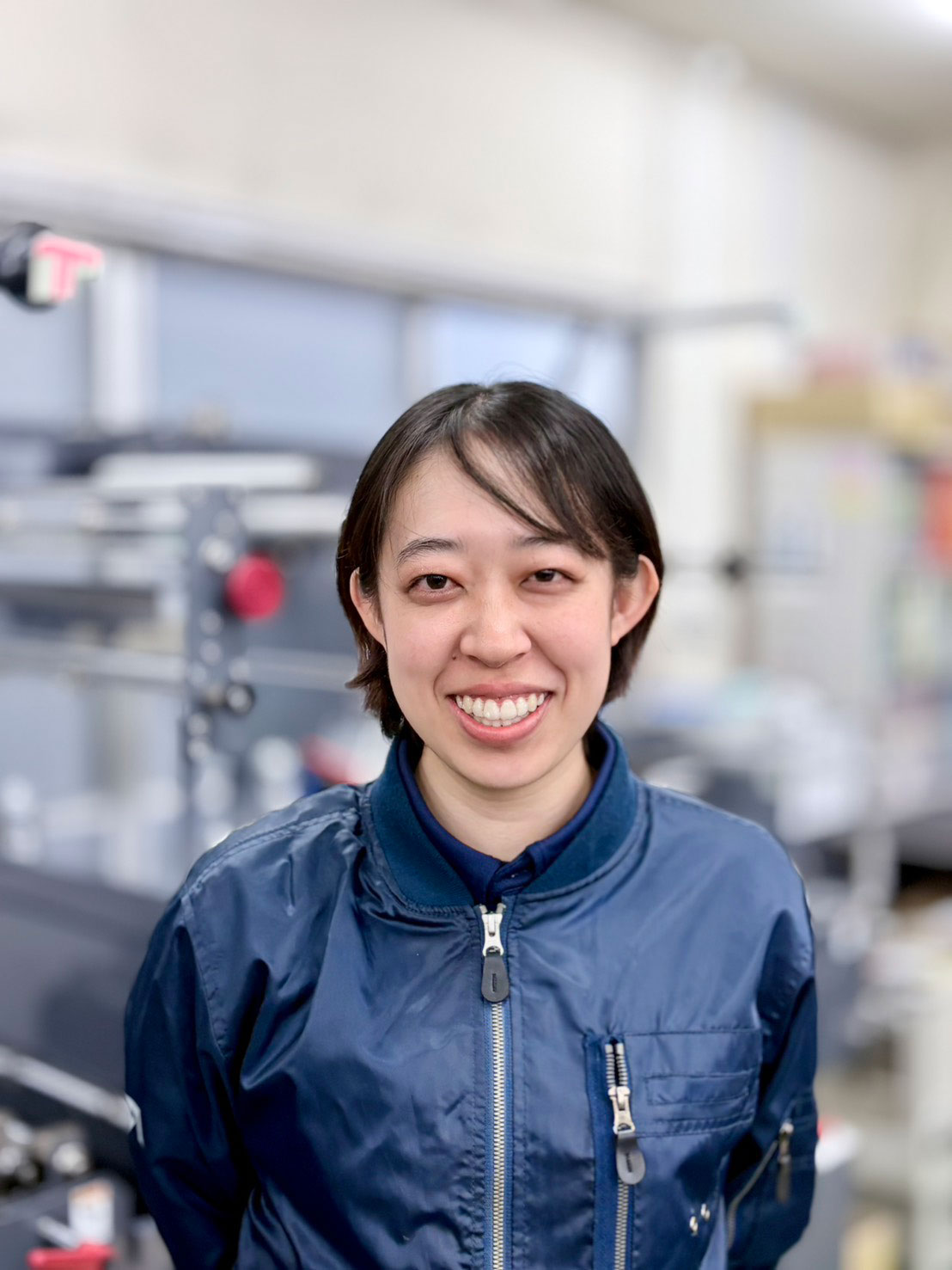 現在は、シールやラベルでなど、製品の形状に合わせて素材を打ち抜く抜き加工を担当しています。まだ知識や経験は十分ではありませんが、うまくいかない時はその原因を考え、フォローをいただきながら改善できるたときに大きなやりがいを感じます。また、慣れてきた作業については効率化を意識して取り組み、その結果が数字として表れた時に達成感があります。